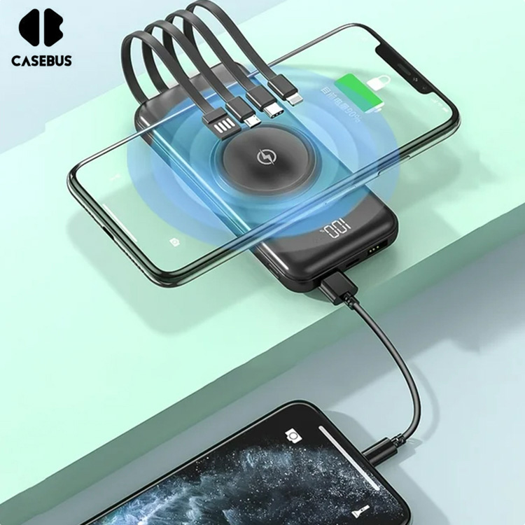 [Built-in Charging Cable] Wireless portable charger has built in iPhone, Micro, Type-C and USB cable compatible with iPhone, iPad, Samsung and other android devices.