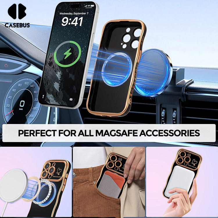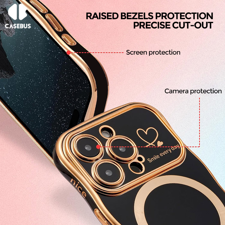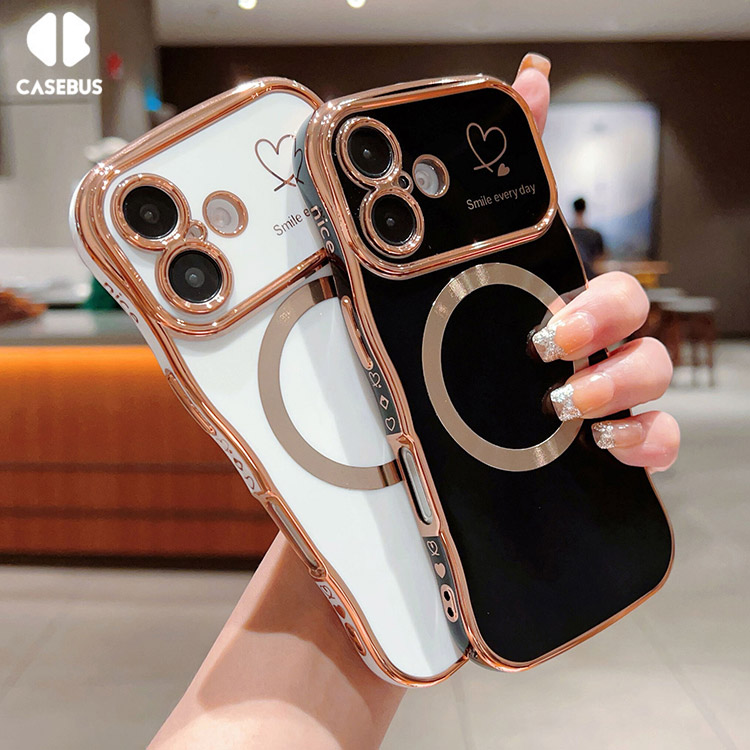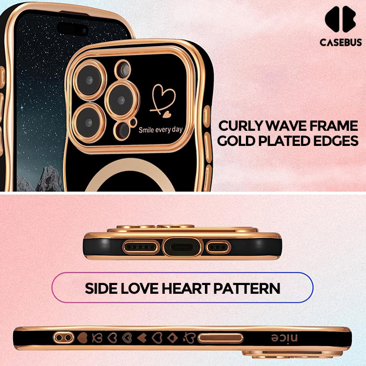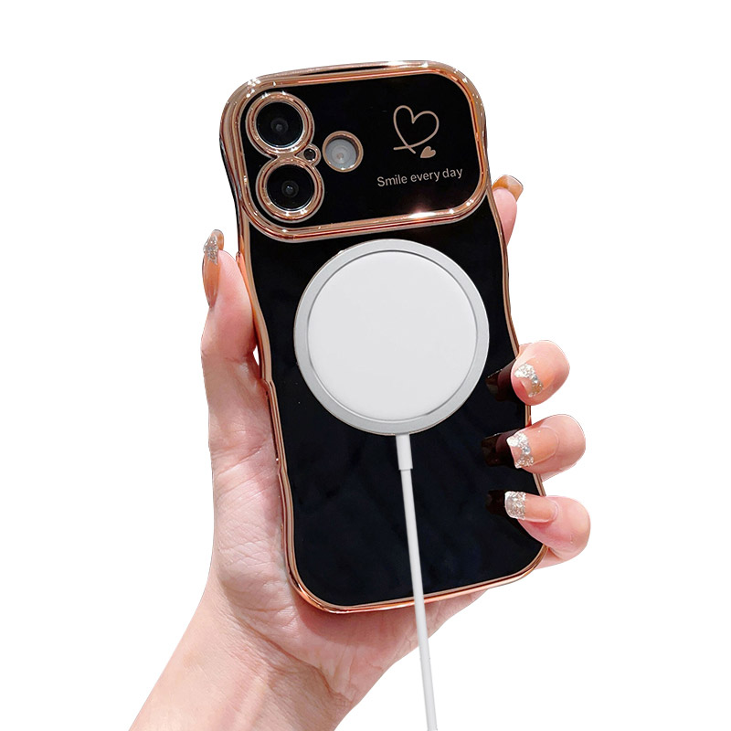 EVELYN Casebus Luxury Plating Phone Case, Support Magsafe, Love Heart Wave Frame Curly Shape, Shockproof Protective Cover