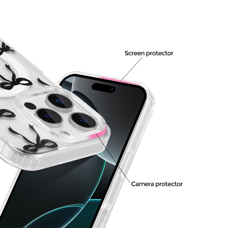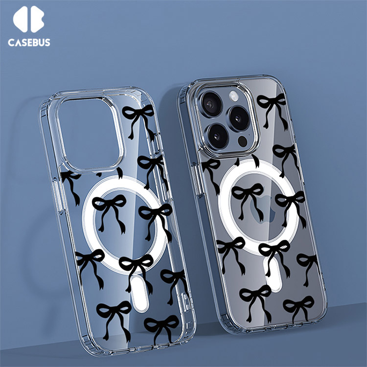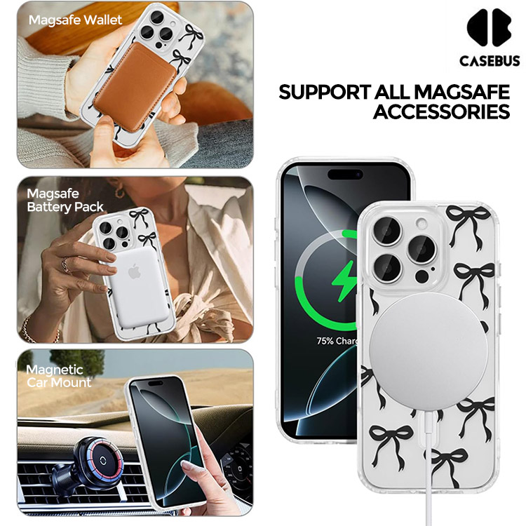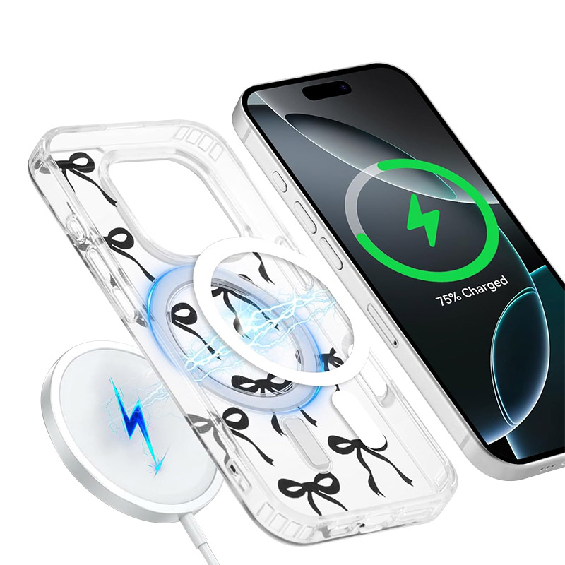 SOFIA Casebus Clear Bow Phone Case, Compatible with Magsafe, Aesthetic Bowknot Transparent Shockproof Protective Cover