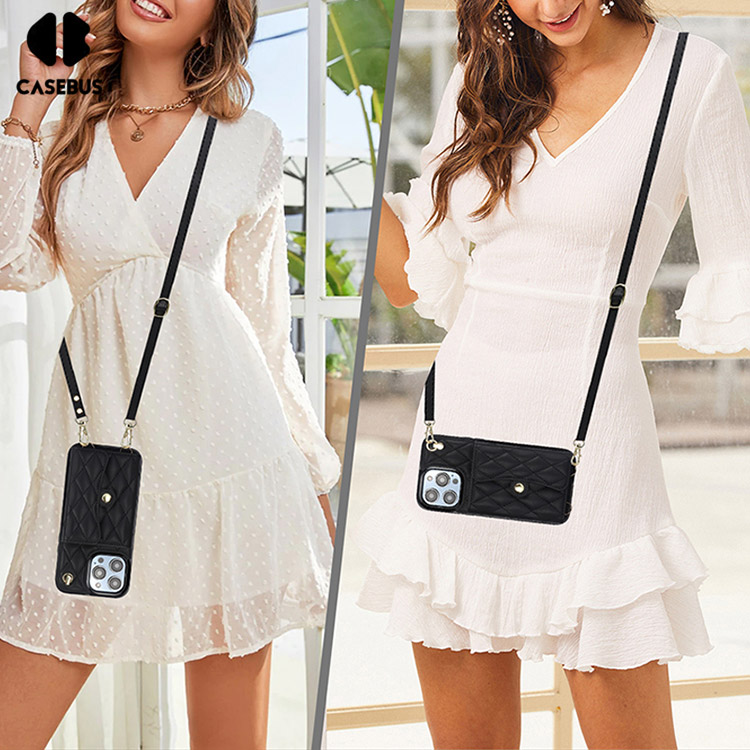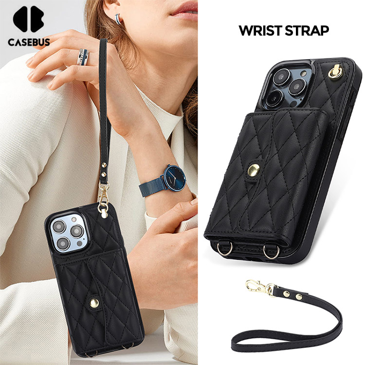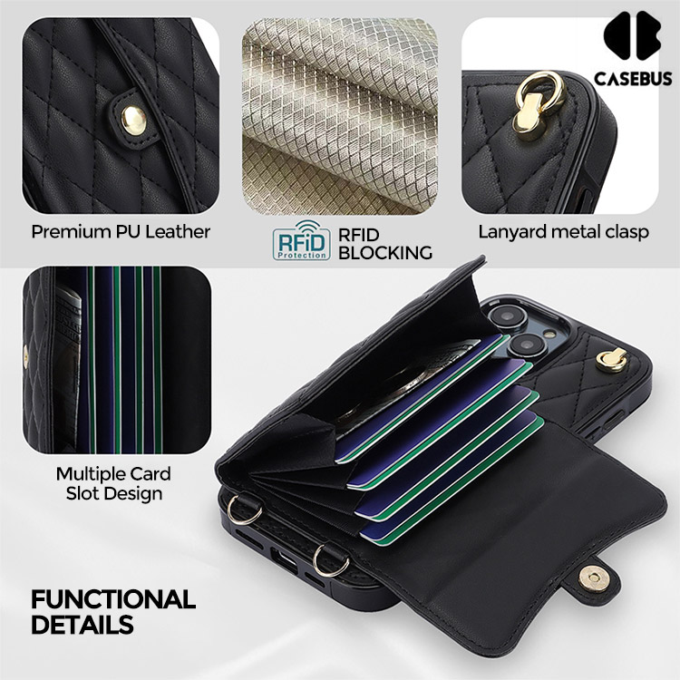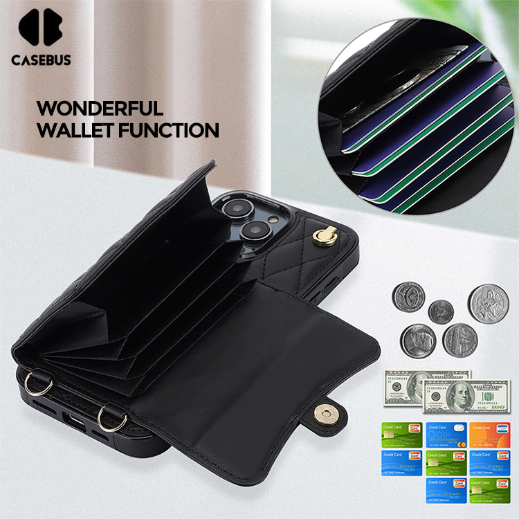 Casebus Crossbody Wallet Phone Case, With Detachable Strap Lanyard Magnetic Closure Credit Card Holder Leather Kickstand Shockproof Cover