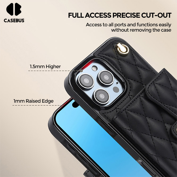 Casebus Classic Crossbody Wallet Phone Case, Premium Leather, Credit Card Holder, Zipper Pocket Purse Handbag, Kickstand Shockproof Case
