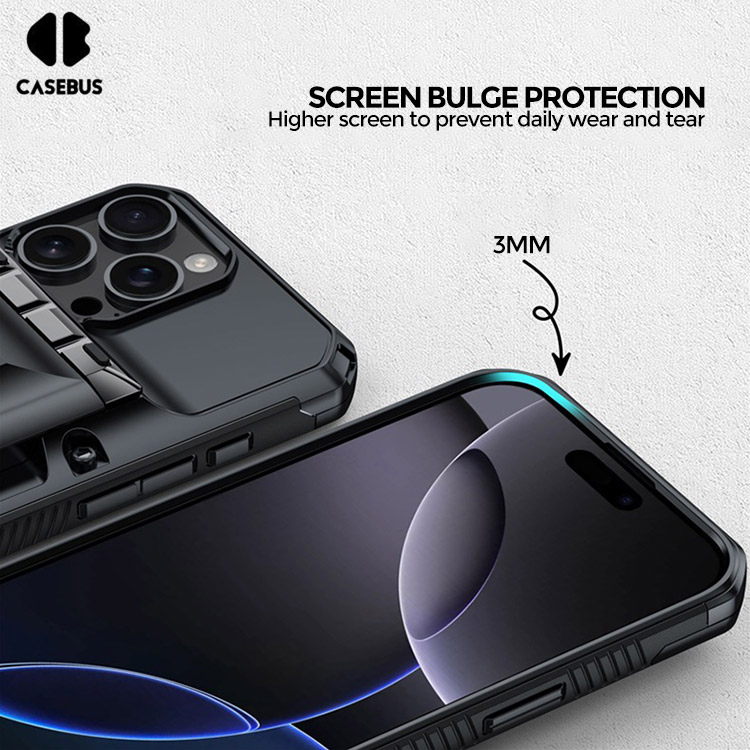 Casebus Slide Camera Cover Phone Case, with Armor, Heavy Duty Shockproof Kickstand Magnetic Car Mount Holder
