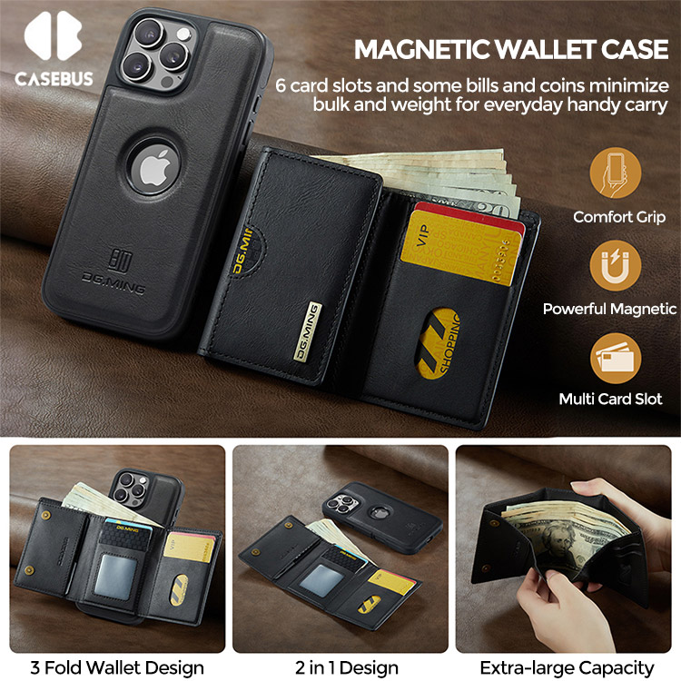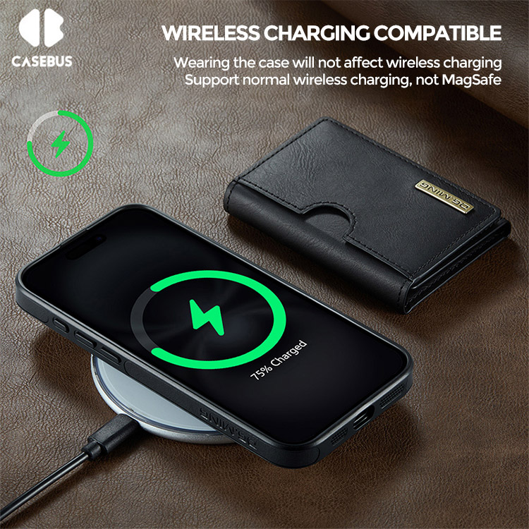 JACE Casebus Detachable Magnetic Wallet Phone Case, Support Wireless Charging, with Card Slot Holder & RFID Blocking Protective