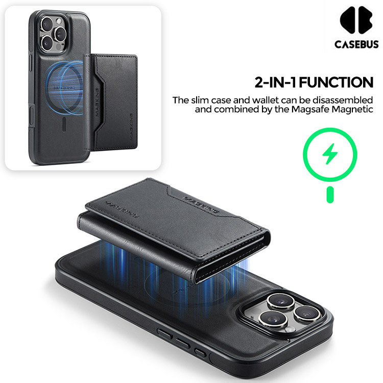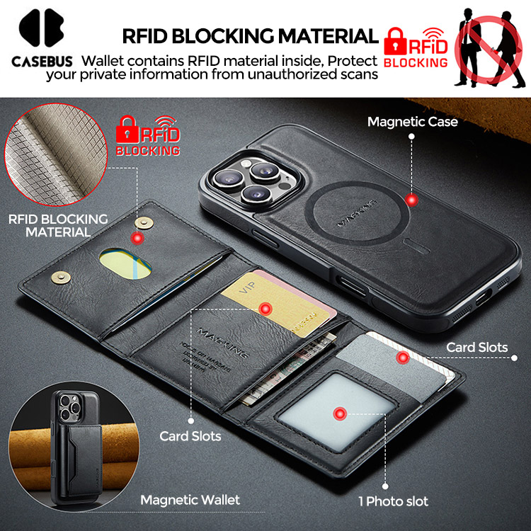 JASPER Casebus Detachable Magnetic Wallet Phone Case, Compatible with Magsafe, with Card Slot Holder & RFID Blocking Protective