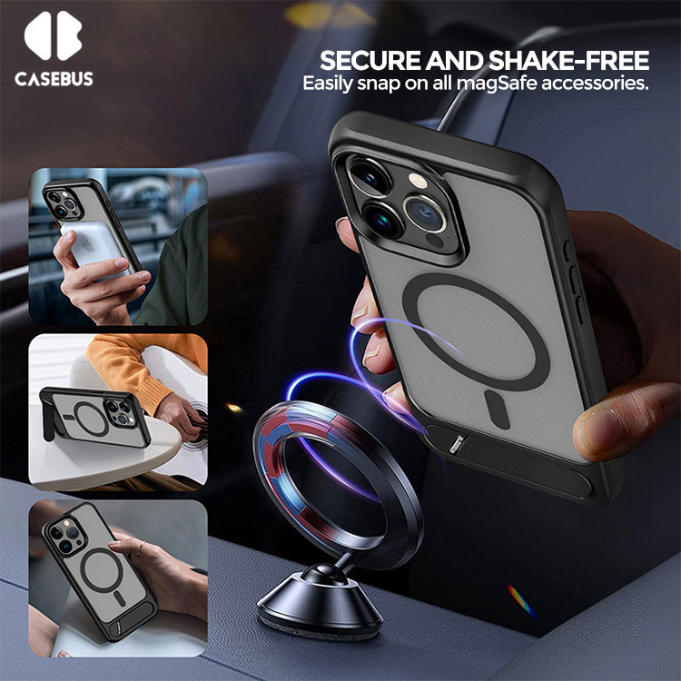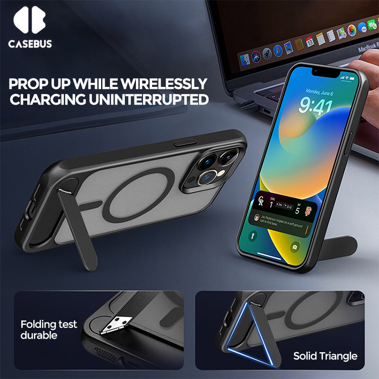 [Foldable Invisible Stand] The kickstand to stay hidden when folded away while keeping Mag Safe ring 100% unobstructed. You can easily adjust your phone to any angle in portrait or landscape view, provide two different angles when watching movies or chatting with your friends. Enjoy every nice moment of life freely!