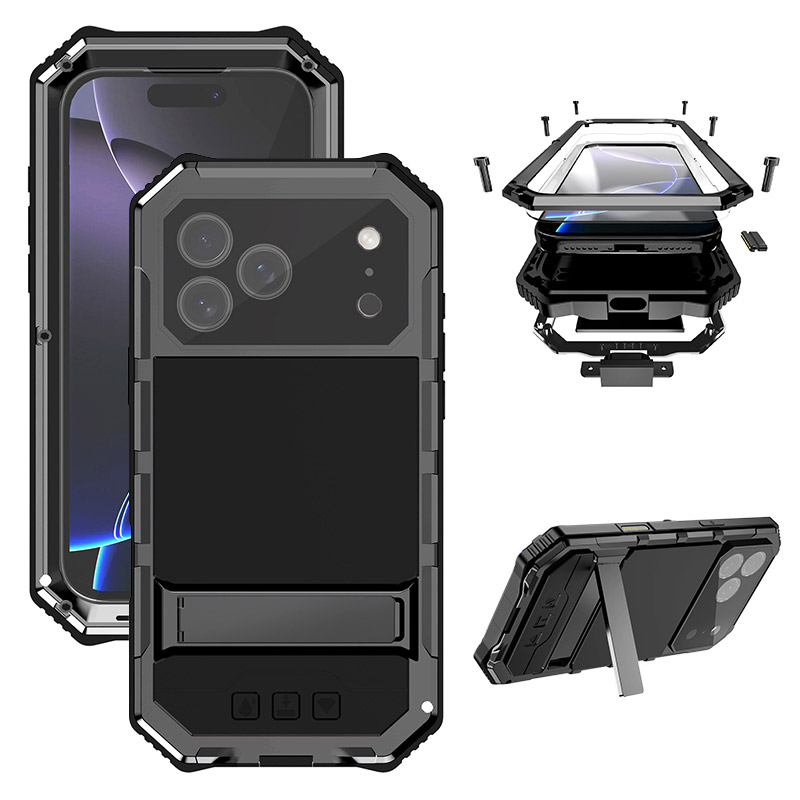 [Military-Grade Protection] This heavy-duty metal case features a triple-layer protection structure,a shock-absorbing flexible silicone inner layer, front and rear reinforced aluminum alloy metal frames, and an integrated high-strength screen protector with an adjustable kickstand. The unique one-piece design preserves a metallic feel while providing all-around impact buffering.