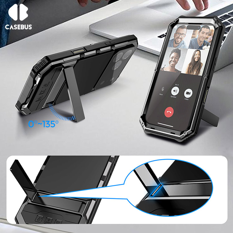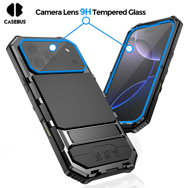 ELIJAH Casebus Heavy Duty Metal Phone Case, Built in Screen Protector, Rugged Stand, 360 Full Body Military Grade Drop Protection