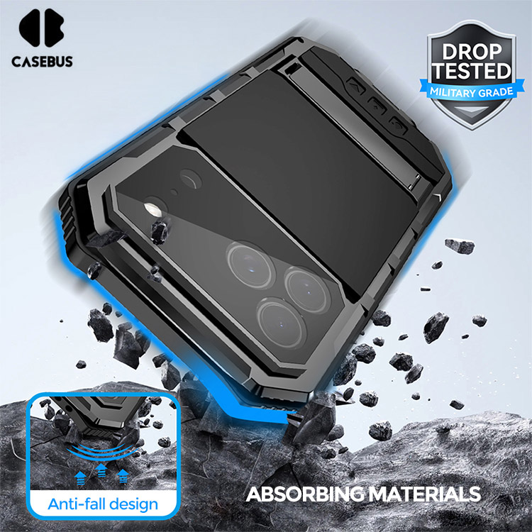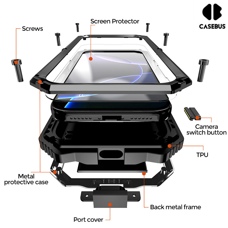 Casebus Metal Waterproof Phone Case, with Built in Screen Protector, FullBody Protective Shockproof Heavy Duty Rugged Defender Cover
