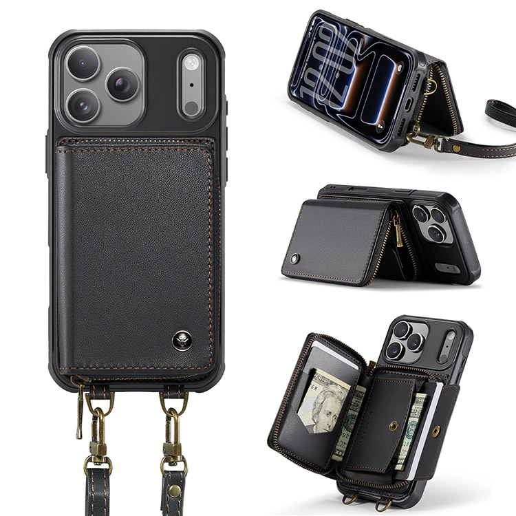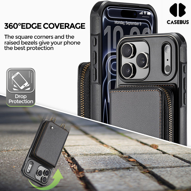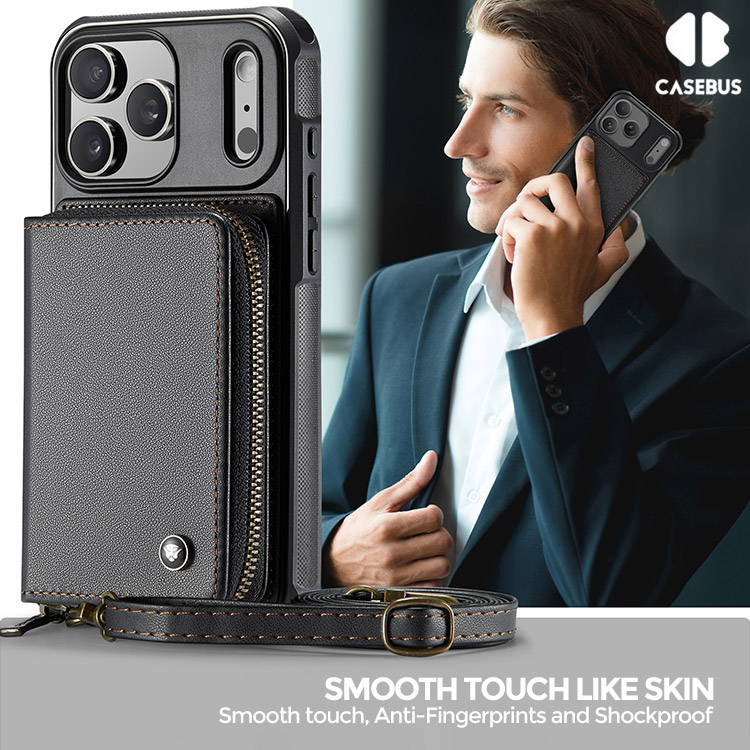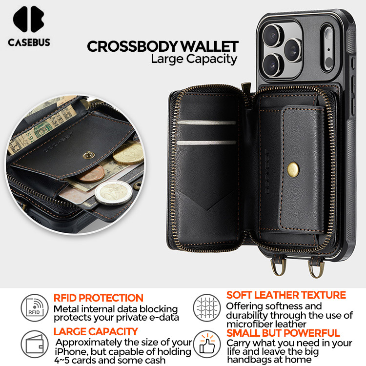 Casebus Classic Crossbody Wallet Phone Case, Premium Leather, Credit Card Holder, Zipper Pocket Purse Handbag, Kickstand Shockproof Case