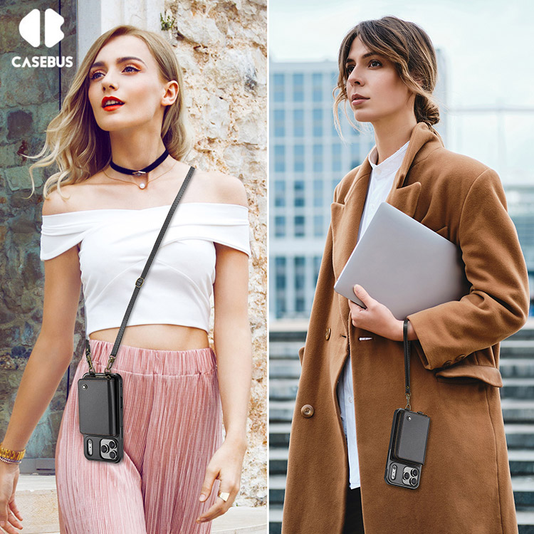 Casebus Crossbody Wallet Phone Case, With Detachable Strap Lanyard Magnetic Closure Credit Card Holder Leather Kickstand Shockproof Cover
