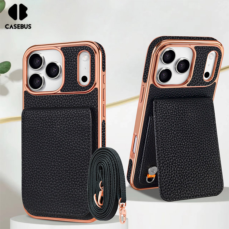 VIOLET Casebus Crossbody Wallet Phone Case, Luxury Electroplated Bumper, Magnetic Flip, with Card Holder