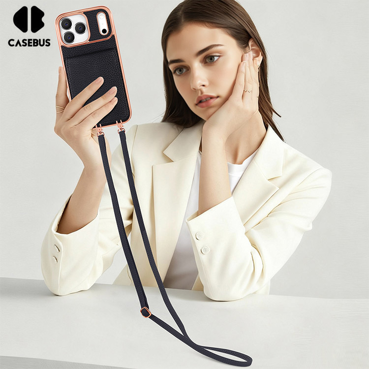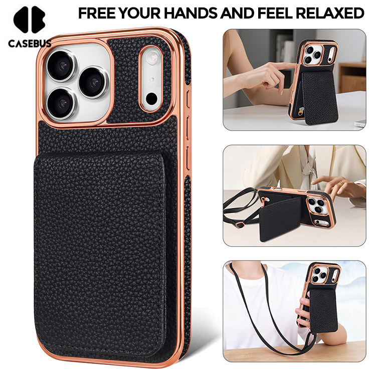 Casebus Crossbody Wallet Phone Case, With Detachable Strap Lanyard Magnetic Closure Credit Card Holder Leather Kickstand Shockproof Cover