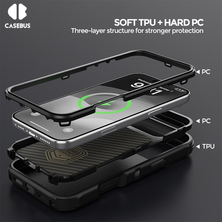 Casebus Classic Full Body Metal Armor Phone Case, with Screen Protector, Heavy Duty Defender Shockproof Case