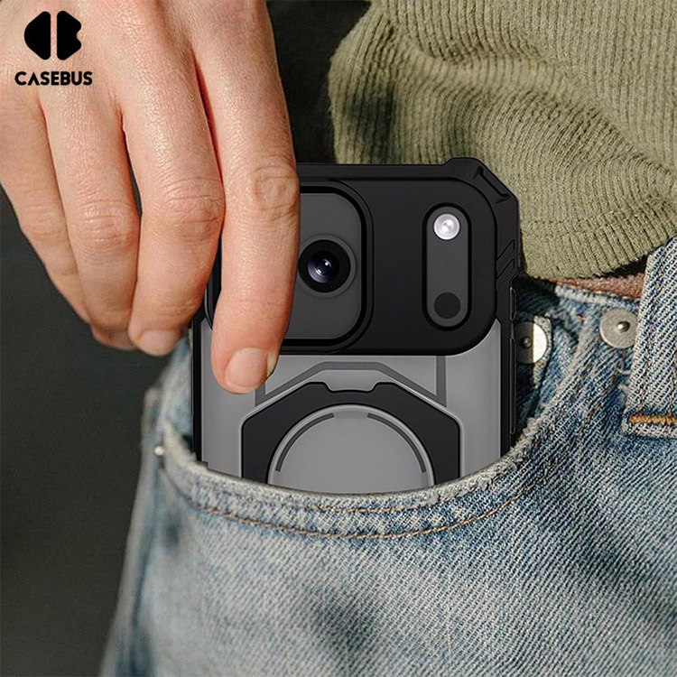 Casebus Classic Phone Case, with Credit Card Holder, Sliding Slot Heavy Duty Protection Dual Layer Armor Shell Cover