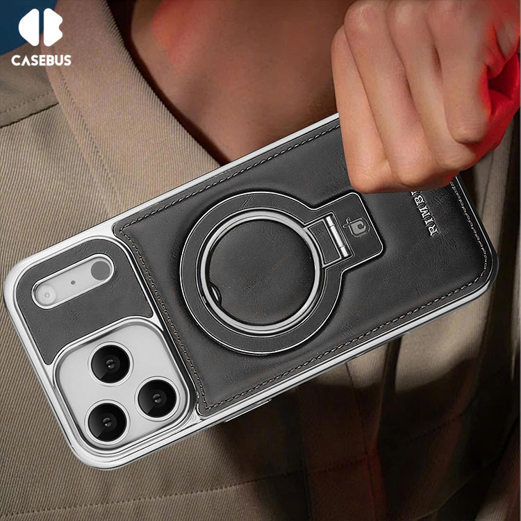 MICAH Casebus Luxury Business Phone Case, Support Magsafe, Leather Drop Protection Cover, with Ring Holder