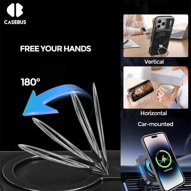 Casebus 360 Rotatable Stand Ring Holder, Compatible with Magsafe, Magnetic Kickstand Shockproof Cover