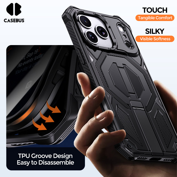 Casebus Slide Camera Cover Phone Case, with Armor, Heavy Duty Shockproof Kickstand Magnetic Car Mount Holder