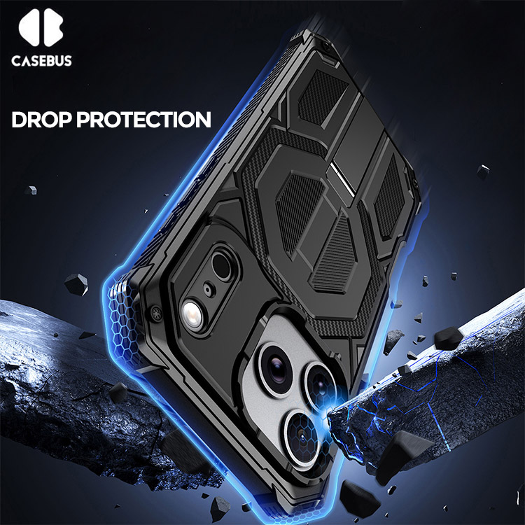 Casebus Heavy Duty Tank Phone Case, with Screen Protector, Metal Rugged Kickstand Sturdy Full Body Case