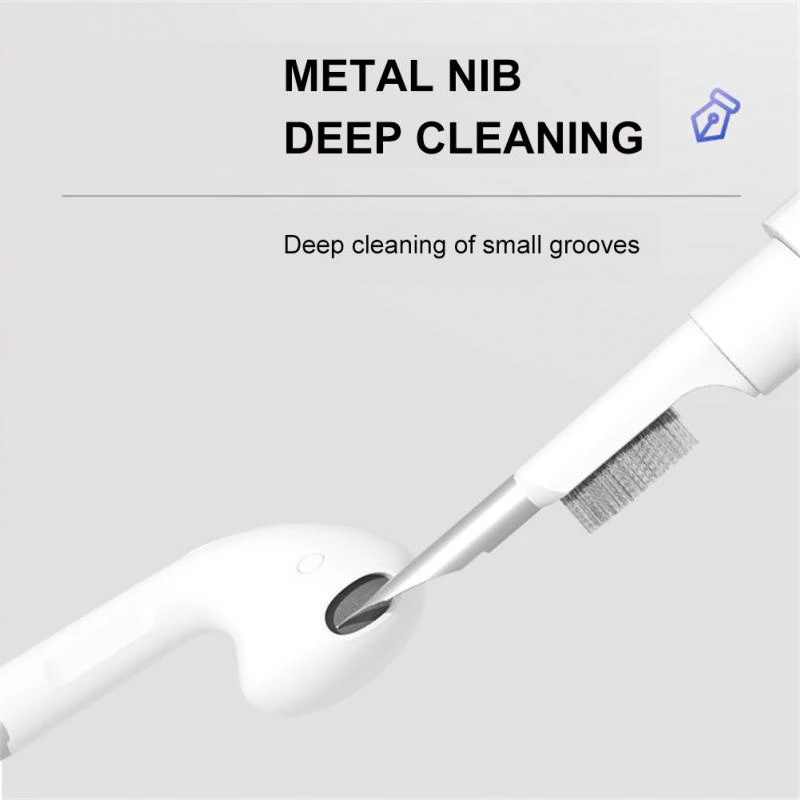 [3-IN-1 DESIGN] The airpods cleaning kit adopts a separate double-head hidden design to meet a variety of cleaning needs. The metal tip of the cleaning pen is like a pen tip, which can clean the small parts and holes of the earplugs for deep cleaning of crevices and stubborn dirt. There is a soft microfiber brush above the pen tip, which can deeply clean the tiny parts and holes of the earplugs. At the other end of the pen is a soft and lightweight brush that can clean the charging compartment.