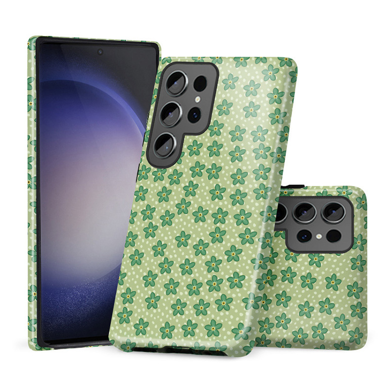 As beautiful as summery-dress and as green as the flowery meadows, the Daydream phone case is an absolute must-have for those romantic summer days and strolls around the city! Tiny green flowers meet with a playful dotted pattern fitting into the Y2K craze and create the cutest protective phone case!