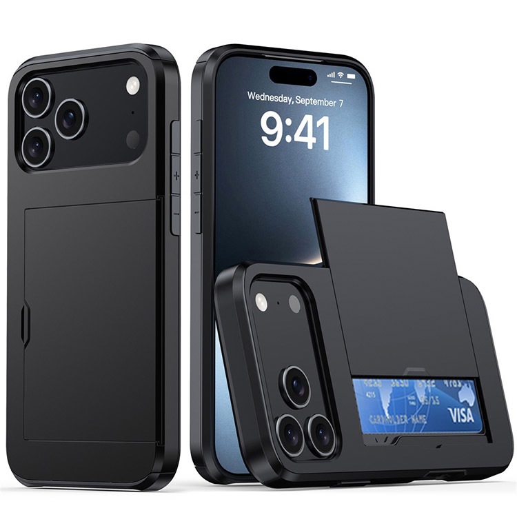 SHAREEF Casebus Classic Phone Case, with Credit Card Holder, Sliding Slot Heavy Duty Protection Dual Layer Armor Shell Cover