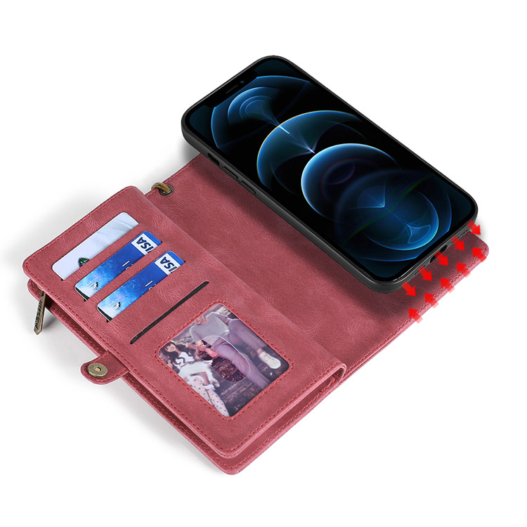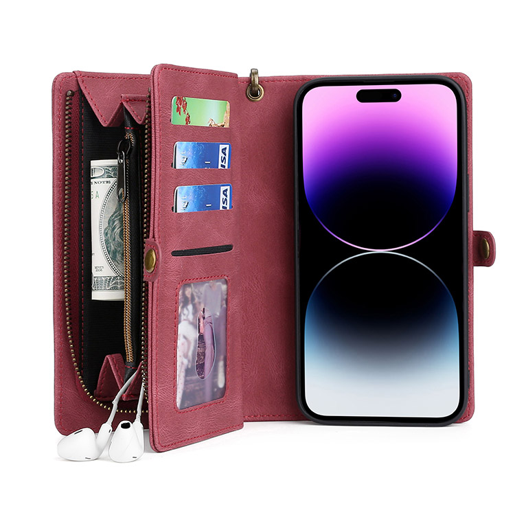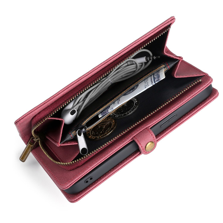 Casebus Classic Detachable Magnetic Wallet Phone Case, 11 Card Slots, 2 in 1, Leather Zipper, Folio Flip, Money Pocket Clutch Case