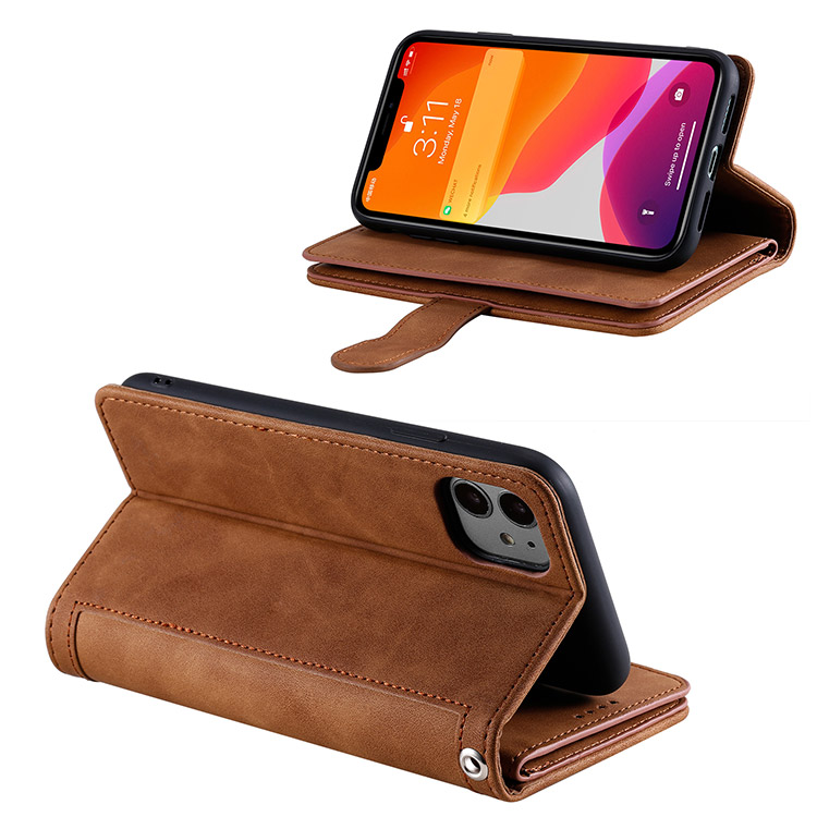 Casebus Classic Flipper Wallet Phone Case, Premium Retro Leather, Folio Zipper, Magnetic Closure, Stand Holder with Wrist Strap Shockproof Case