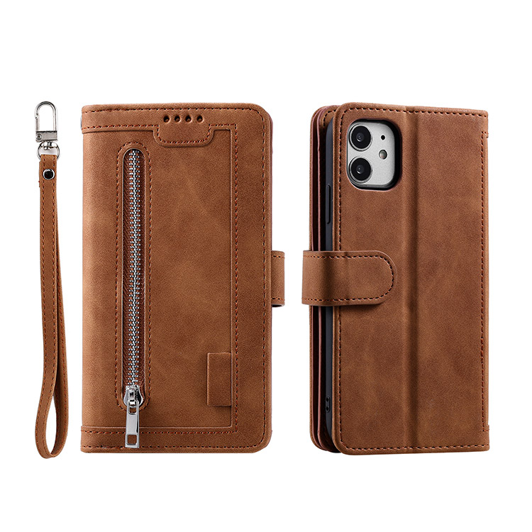 PARVEEN Casebus Retro Wallet Phone Case, 9 Card Slots, Zipper Pocket Handbag, Leather, Magnetic Closure, Wrist Strap, Kickstand Shockproof Case