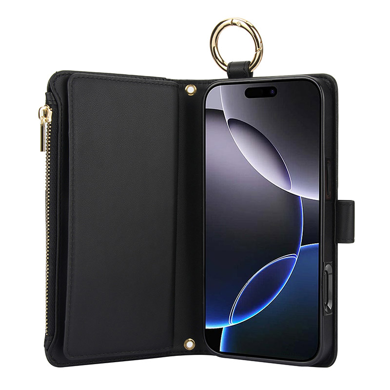DARLENE Casebus Crossbody Wallet Phone Case, Multi Function Stylish Ring Zipper Purse Cover, with Card Slots & Wrist Strap