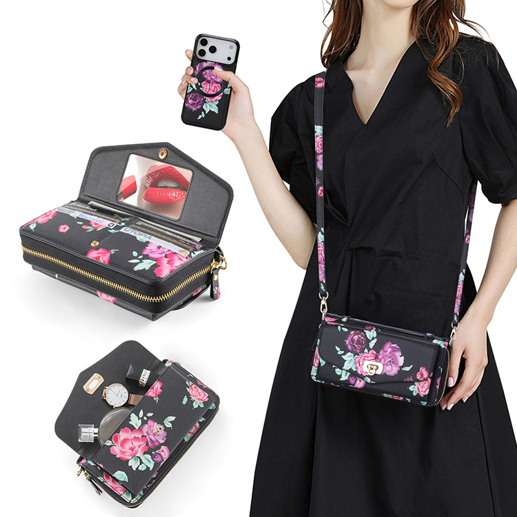 [Multi-function] 2 in 1 wallet style design leather case with 14 Card Slots, 3 purse, 1 Zipper Wallet, 1 buckle large capacity, 1 wrist band, 1 crossbody strap, to keep your ID card, credit cards, coins, cash and other things. Make your life and work more convenient, it can meet your outdoor needs all day long. Measure wallet approx 19.2x10x6cm (L x W x H). Crossbody strap: about 150cm long.