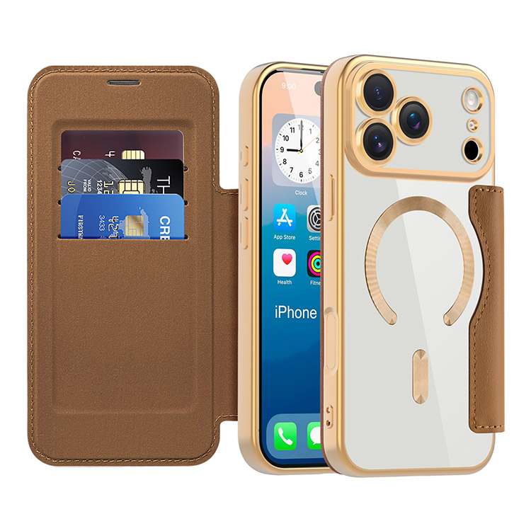 AWSTIN Casebus Wallet Phone Case Compatible with MagSafe, Built in Camera Lens Protector, Flip Folio, Card Holder, Shockproof, Support Wireless Charging, Leather & Transparent Cover