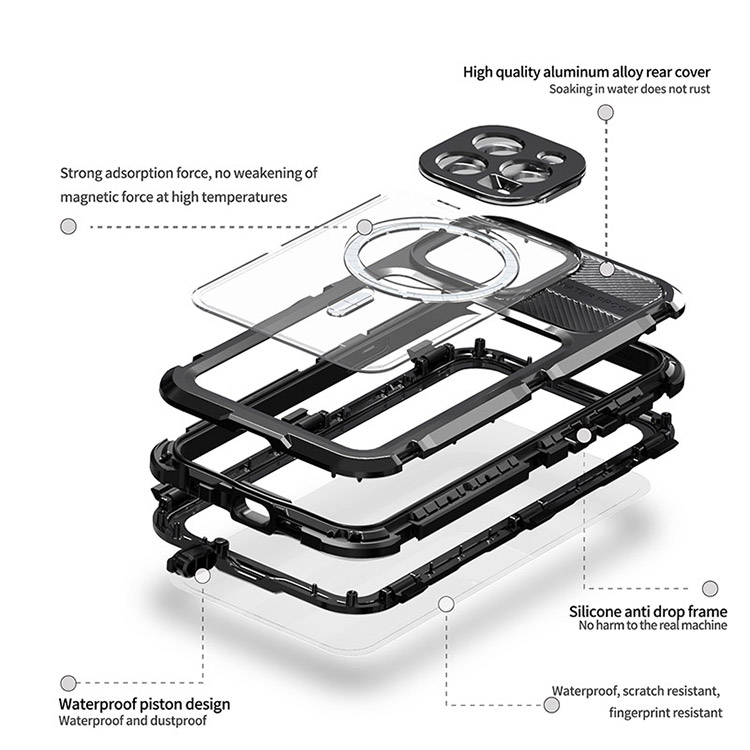 [Rugged Metal Frame] The outer frame made of durable aluminum alloy enhances the protection of the whole body. All four corners have integrated silicone pads for a comfortable grip and reduced impact. The unique buckle design is easy to install.