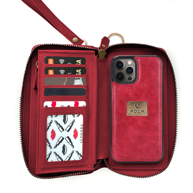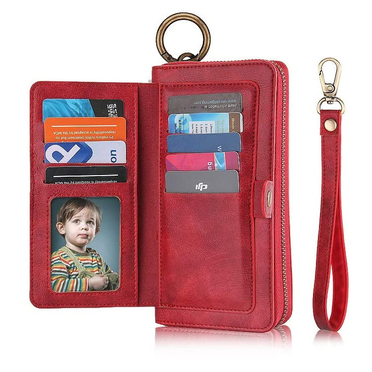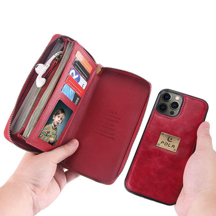 2 in 1 wallet style design leather case with 14 Card Slots,3 purse,1 Zipper Wallet, 1 wrist band,1 metal buckle,to keep your ID card, credit cards, coins ,cash and other things.