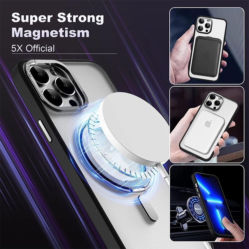 [Super Strong Magnetism] Magnetism is 5 times stronger than official cases, the case connects perfectly and locks into place with the MagSafe accessories,ensuring stay securely on car mount even on bumpy roads. Moreover, this case can even attach to metal surfaces like refrigerators, making it easy to use hands-free while cooking.