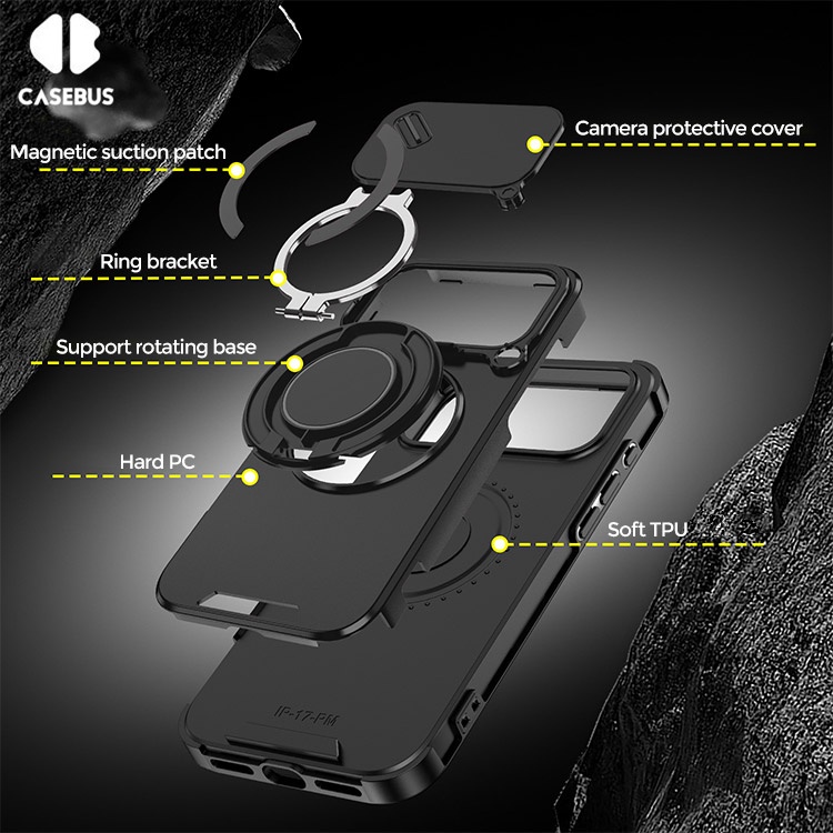 OLIVER Casebus Heavy Duty Phone Case, with Camera Cover & 360 Kickstand Ring