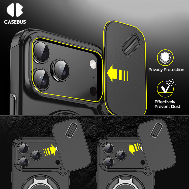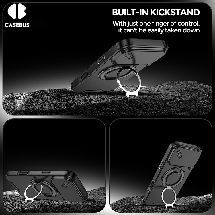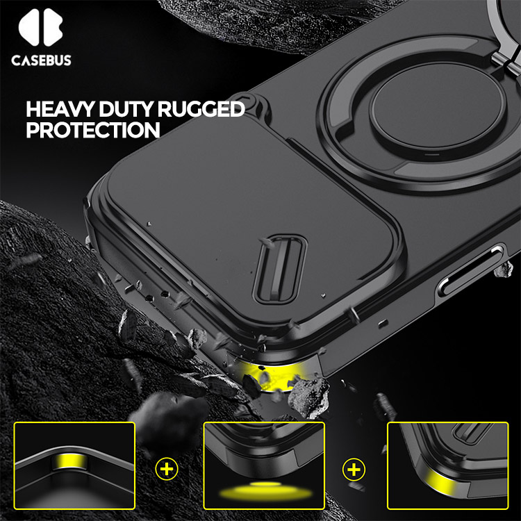 Casebus Slide Camera Cover Phone Case, with Armor, Heavy Duty Shockproof Kickstand Magnetic Car Mount Holder