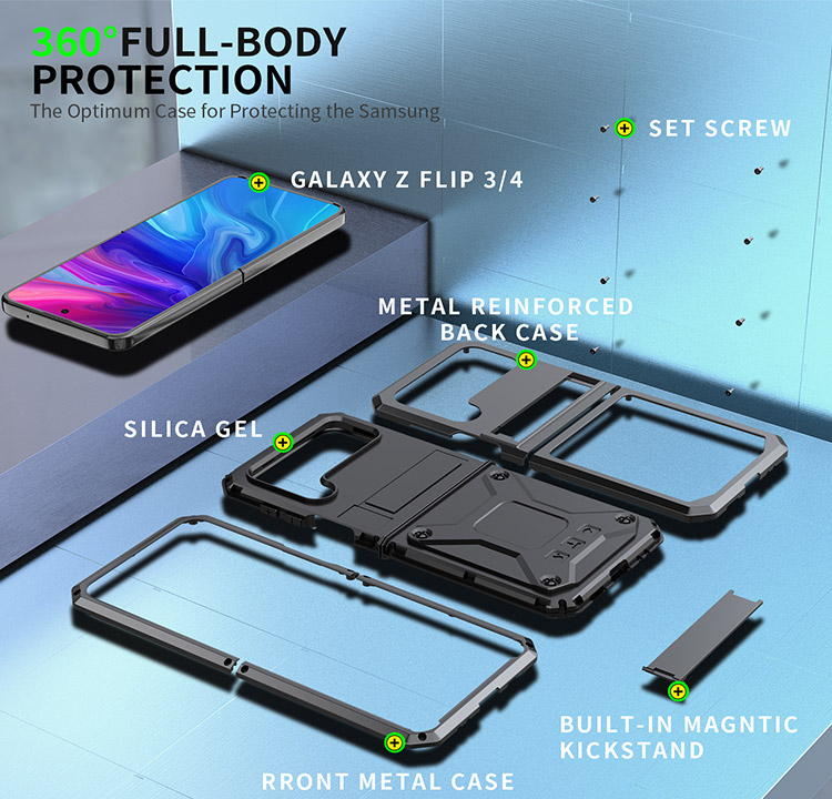HUTTON Casebus Heavy Duty Tank Phone Case, with Screen Protector, Metal Rugged Kickstand Sturdy Full Body Case