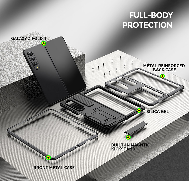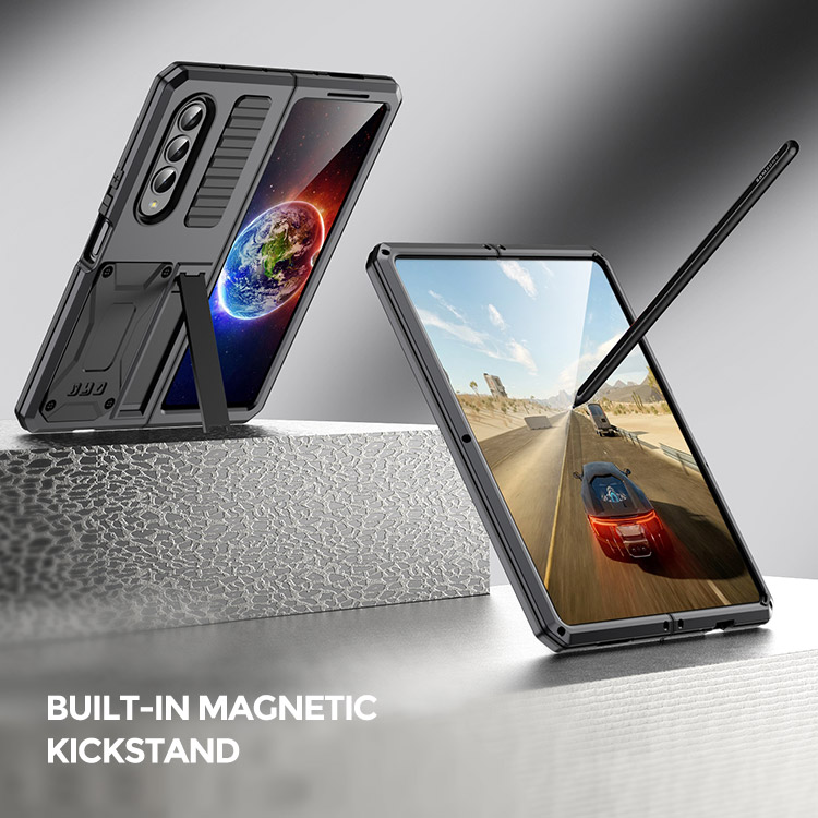 HUTTON Casebus Heavy Duty Tank Phone Case, with Screen Protector, Metal Rugged Kickstand Sturdy Full Body Case