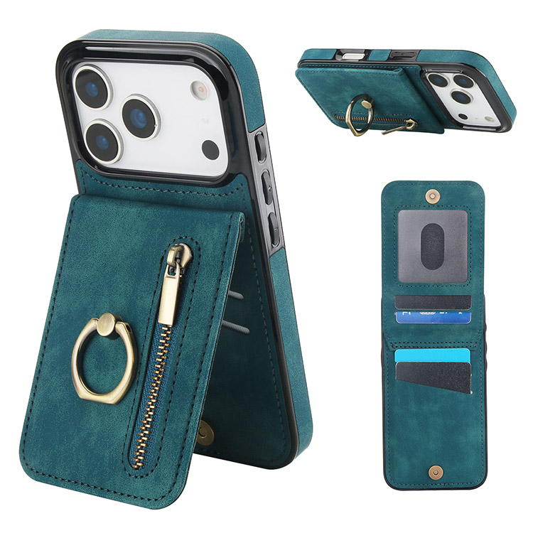 OMER Casebus Wallet Phone Case, Ring Holder, Credit Card Slots, Zipper Pocket, Premium Leather Purse, Shockproof Cover