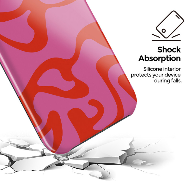Bold and big take of a liquid swirl can be met in our Ride the Wave phone case. It will not only turn your device into a beautiful art piece but will also keep it safe and sound while encasing it in a design from a 70s art gallery!