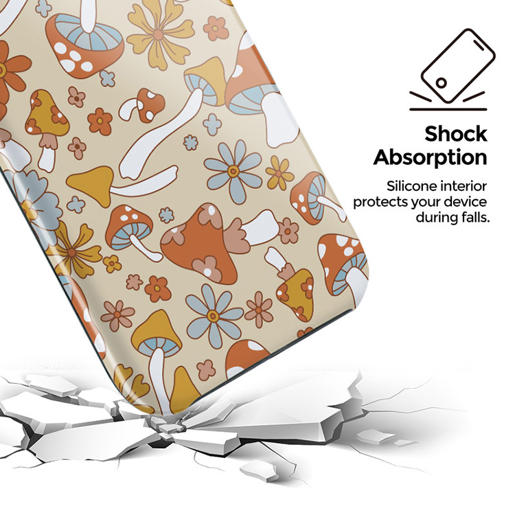 This case looks exactly like the picture. I just love the mushroom magic. It’s so whimsical. They are very protective and if the cases get damage it’s very unnoticeable. We’re talking slight dents or scratches that you can’t see unless you really look for it in the light. Highly recommend.