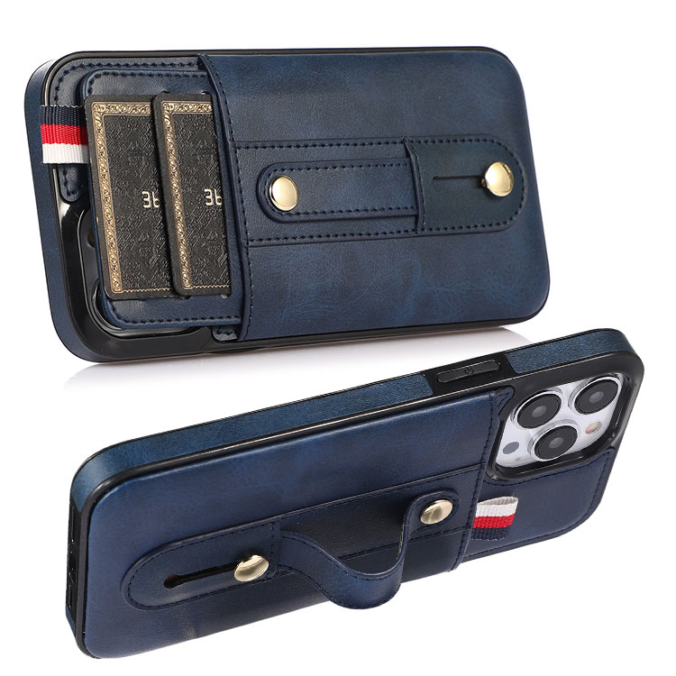 RABAN Casebus Back Wristband Ring Wallet Phone Case, Leather with Pushable Card Slots Ultra Thin Kickstand Shockproof Cover