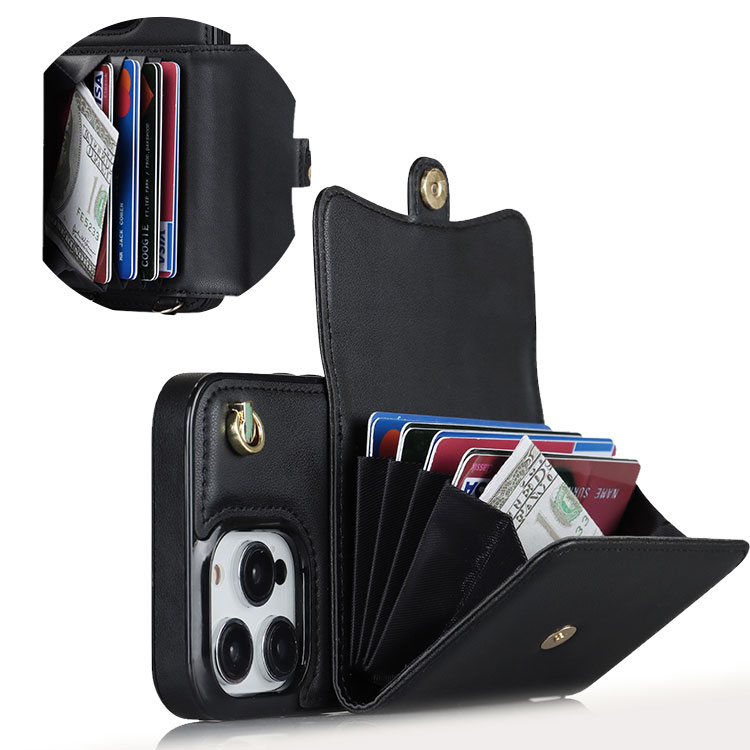 Casebus Crossbody Wallet Phone Case, With Detachable Strap Lanyard Magnetic Closure Credit Card Holder Leather Kickstand Shockproof Cover