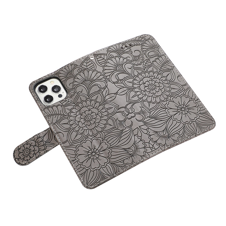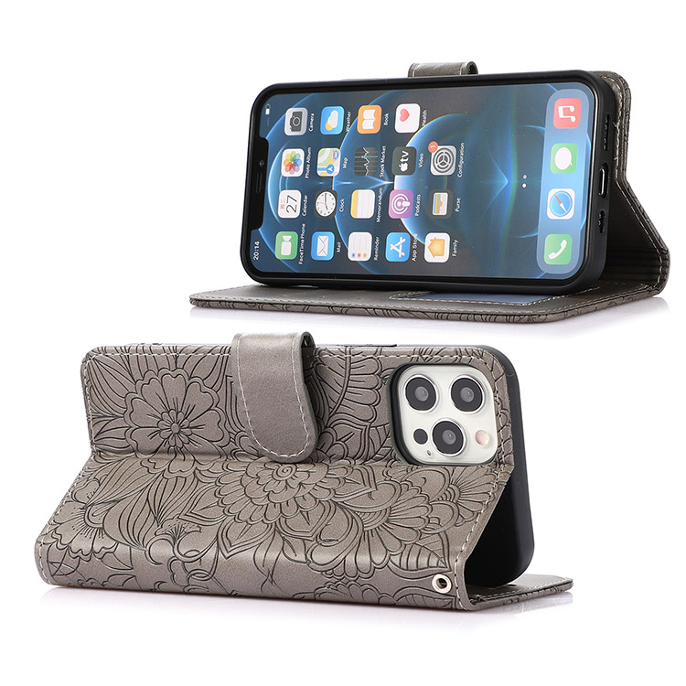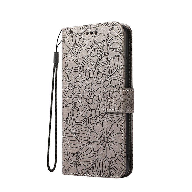PENVRO Casebus Embossed Flower Flip Wallet Phone Case, with 3 Card Slots plus 1 Cash Pocket Lanyard Soft Leather Kickstand Protective Case