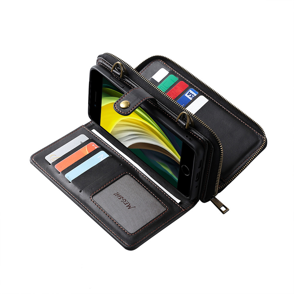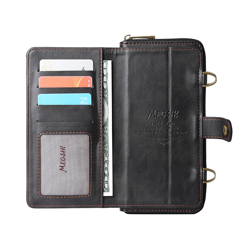 Casebus Multi Card Zipper Wallet Phone Case, 7 Card Slots Cash Pocket Kickstand Strap Leather Folio Flip Magnetic Cover