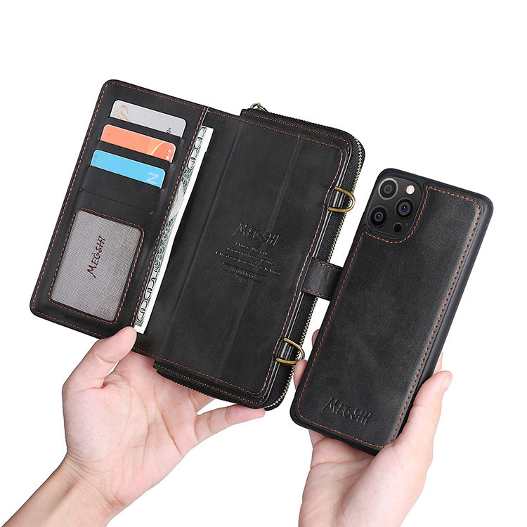 Casebus Classic Detachable Magnetic Wallet Phone Case, 11 Card Slots, 2 in 1, Leather Zipper, Folio Flip, Money Pocket Clutch Case