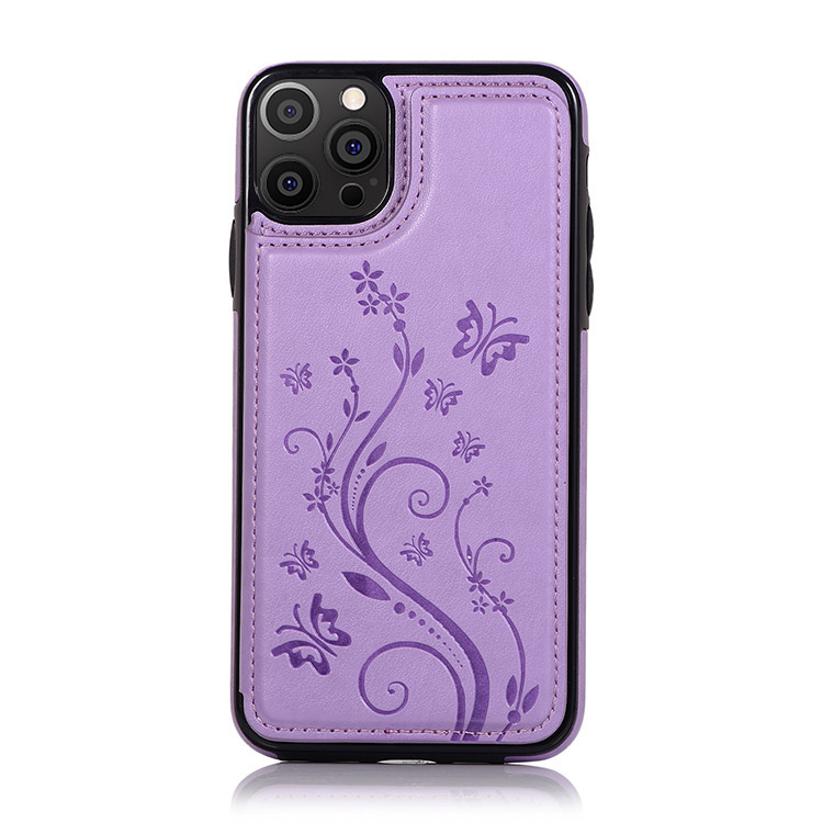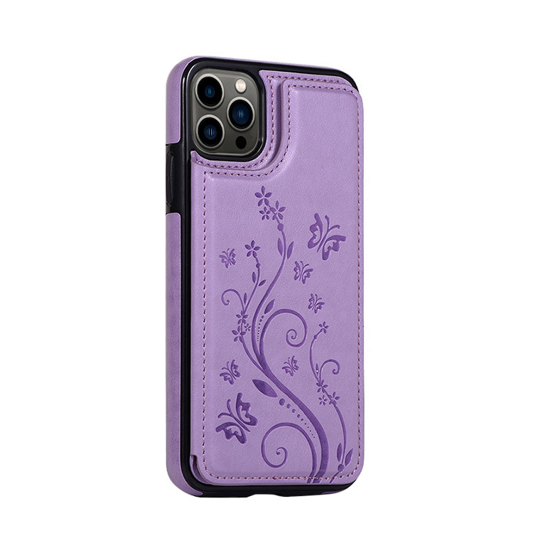 SOMMER Casebus Classic Buckle Wallet Phone Case, Embossed Flower, Credit Card Holder, Leather, Kickstand, Double Magnetic Clasp, Shockproof Case