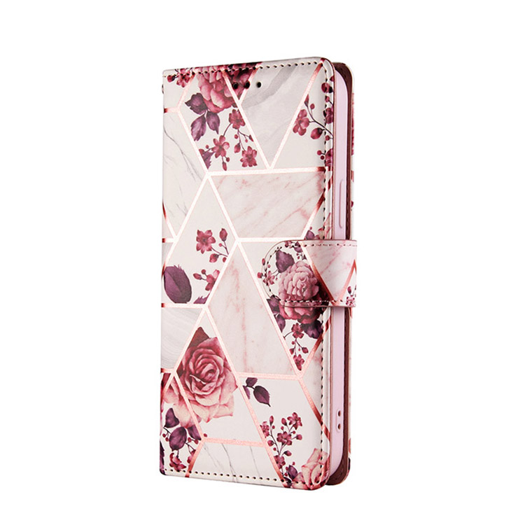 AUHERT Casebus Classic Marble Wallet Phone Case, Premium Leather, Credit Card Holder, Magnetic Closure, Wrist Strap, Kickstand Shockproof Case