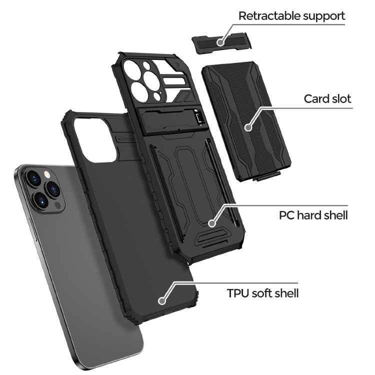 Casebus Classic Phone Case, with Credit Card Holder, Sliding Slot Heavy Duty Protection Dual Layer Armor Shell Cover
