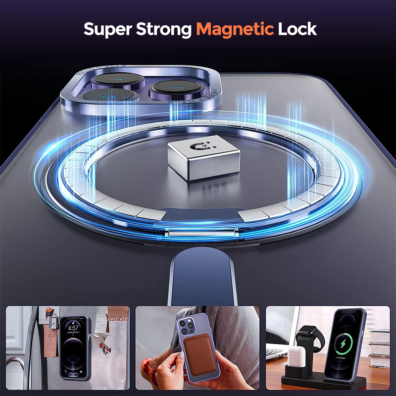 [Super Strong Magnetism] Magnetism is 5 times stronger than official cases, the case connects perfectly and locks into place with the MagSafe accessories,ensuring stay securely on car mount even on bumpy roads. Moreover, this case can even attach to metal surfaces like refrigerators, making it easy to use hands-free while cooking.